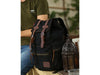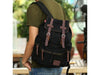 The shoulder straps are adjustable for carrying comfort on one or two shoulders. The main material is a high-quality cotton mixed fabric that is durable, sturdy, and ready to handle everything your busy day can throw at it. And because it is a solid black shade with brown leather finishes like zipper pulls and buckle straps, the bag coordinates with just about any outfit whether you're heading to class, to study, or even to work.