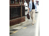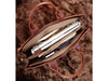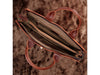 There is one long adjustable strap, that has the ability to be detached. Also, making this bag unique, is the double handles. When open, there is a cutout that is made in the flap that the handles slide out of. This gives the satchel a whole new look.
